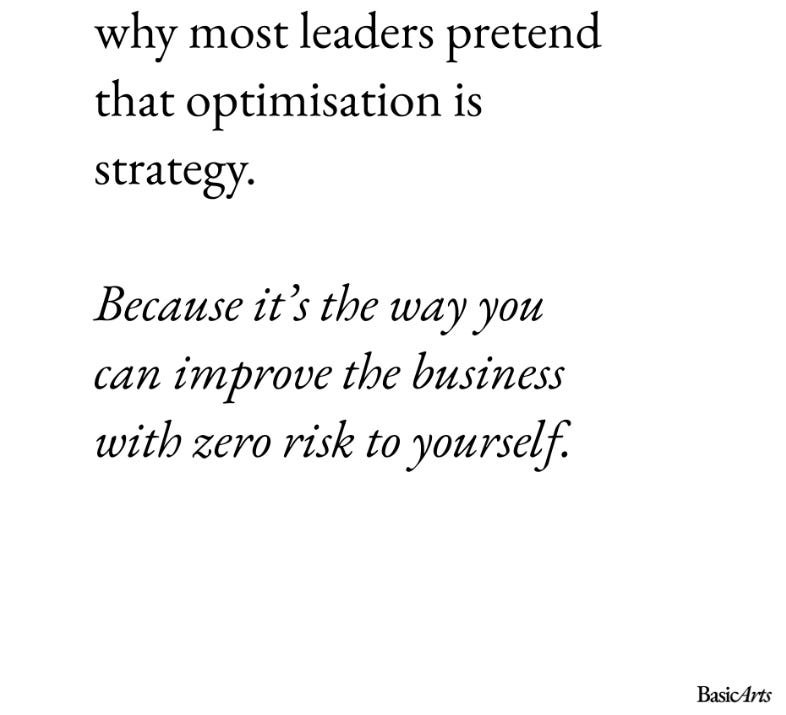 This week’s lesson is a reminder from Alex Smith about the strategy antipattern seen in many organizations known as “Optimization”.